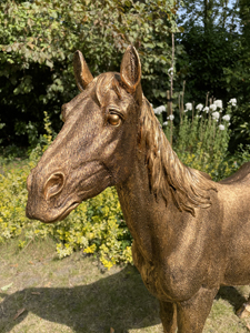 Paard (goud) Luxe afwerking voor tuin, entree of terras. Kies hierboven een NL/BE/FR platform voor alle beelden en prijzen Op afspraak Uit voorraad